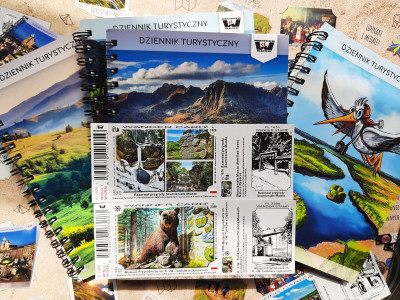 Naklejki kolekcjonujemy w dziennikach turystycznych – Wander Book. W dzienniku jest również miejsce na dodatkowy opis, gdzie możemy utrwalić nasze wrażenia z wycieczki. To doskonały sposób na stworzenie indywidualnego pamiętnika z naszych wypraw.